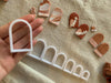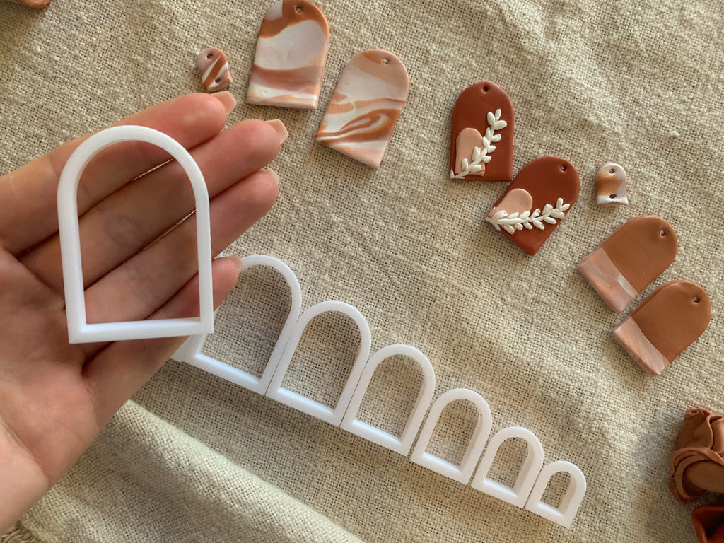 Includes 7 arch shaped cutters ranging from 1.4cm to 5cm in height. The colour of the cutters you receive is random depending on what plastic we have in stock as we 3D Print the cutters ourselves.